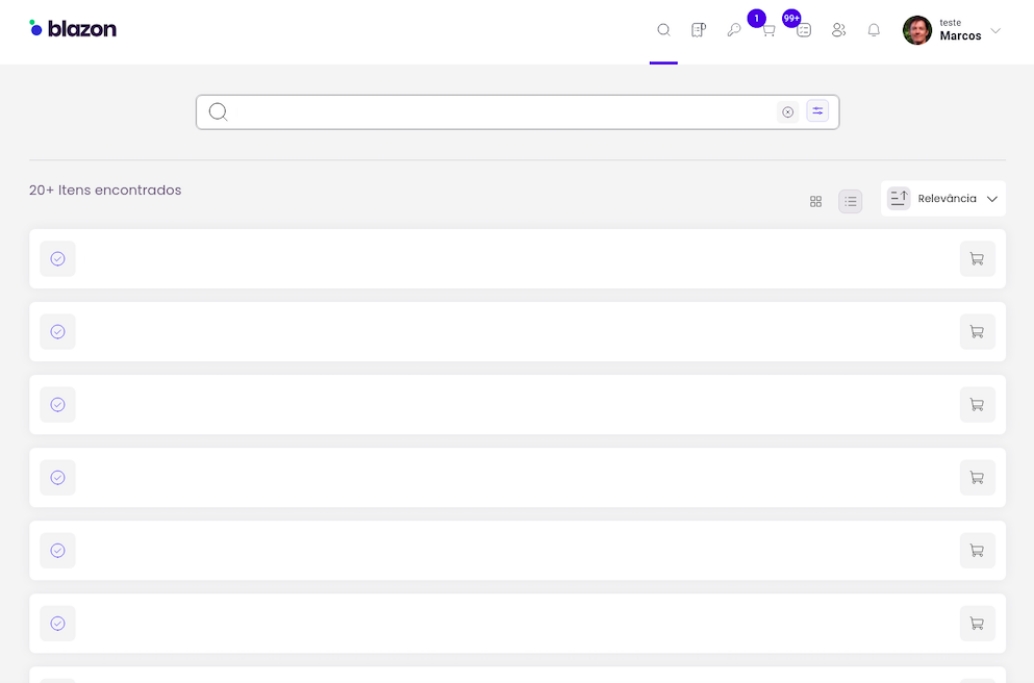 Ao encontrar o item do catálogo desejado, conforme descrito na busca, você deve acionar o ícone do carrinho, à direita do item selecionado na busca, como ilustrado anteriormente, assim será adicionado a seu carrinho.
