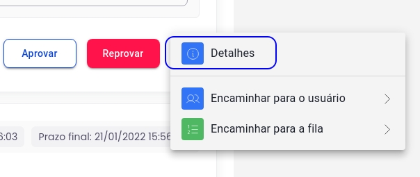 Para ver os detalhes de uma tarefa de qualquer uma das 6 categorias, você pode clicar no botão, mais a direita, de ações comuns (