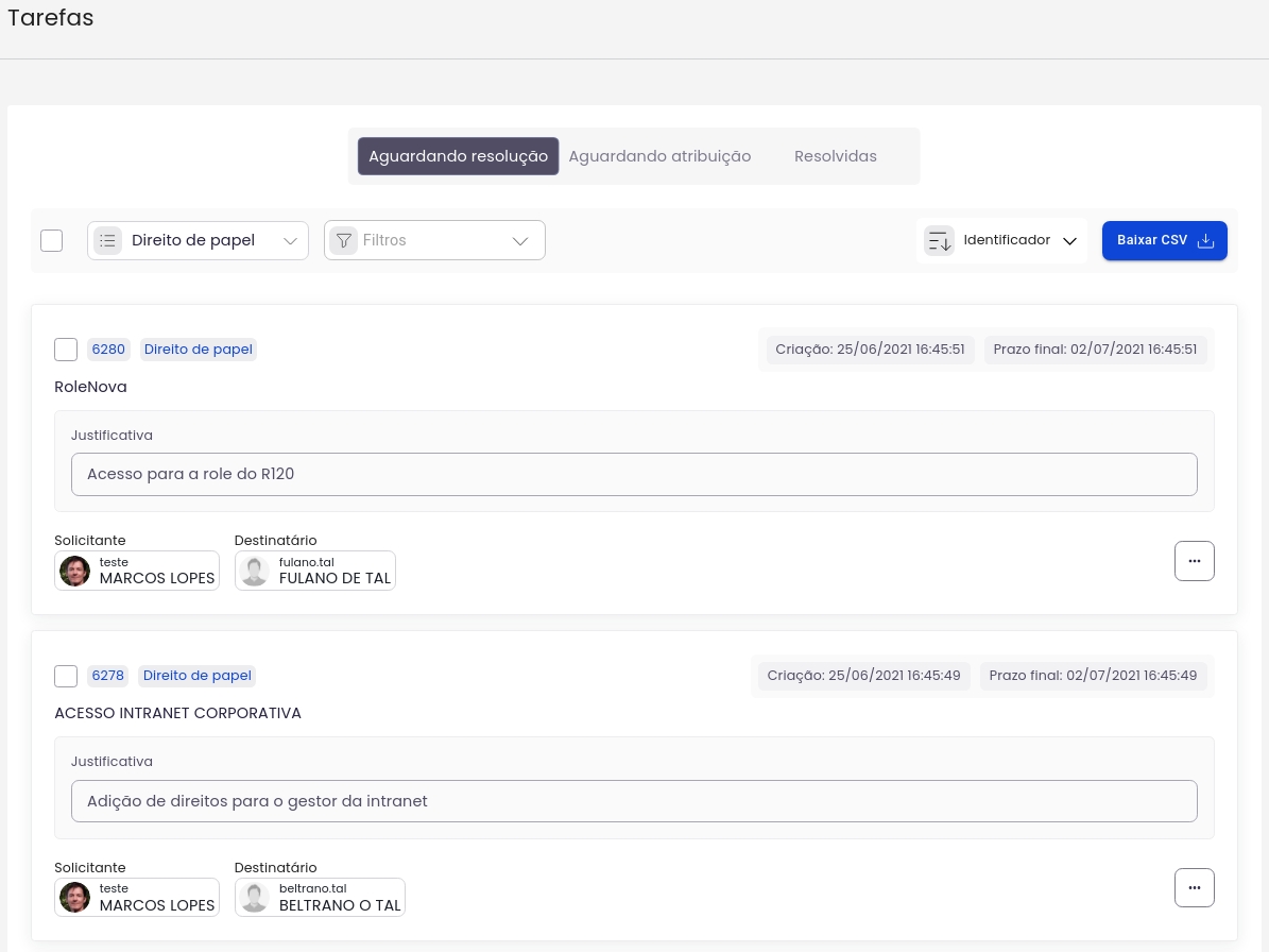 Como ilustrado na figura acima, caso o usuário ache necessário, ainda pode marcar/desmarcar algum acesso, recurso ou direito, durante o processo de resolução da tarefa de direito de papel.