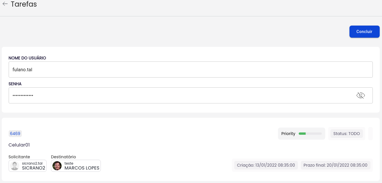 Nesse ponto basta você clicar no botão "Concluir" que a tarefa será dada como provisionada.