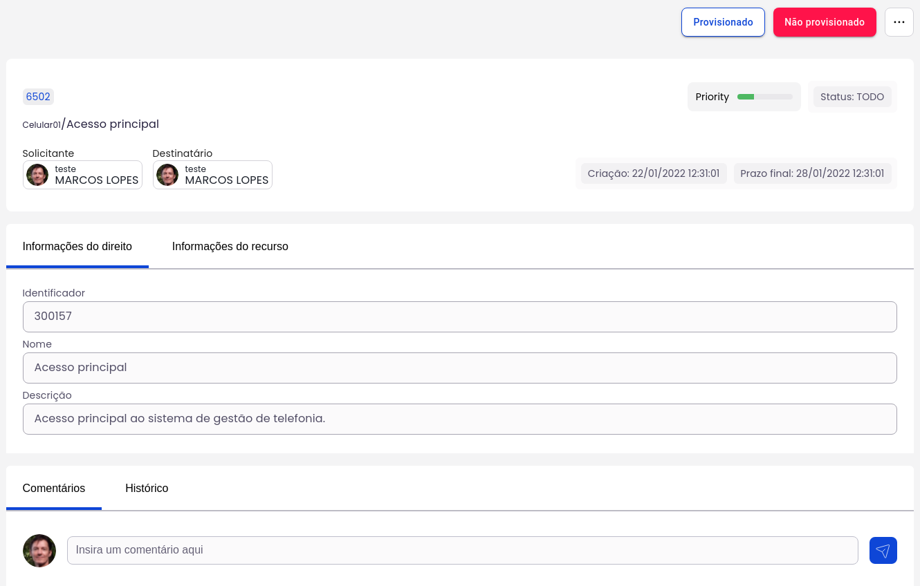 Portanto, para a resolução da tarefa, basta você definir se o acesso foi provisionado ou não, e clicar no botão respectivo da definição.