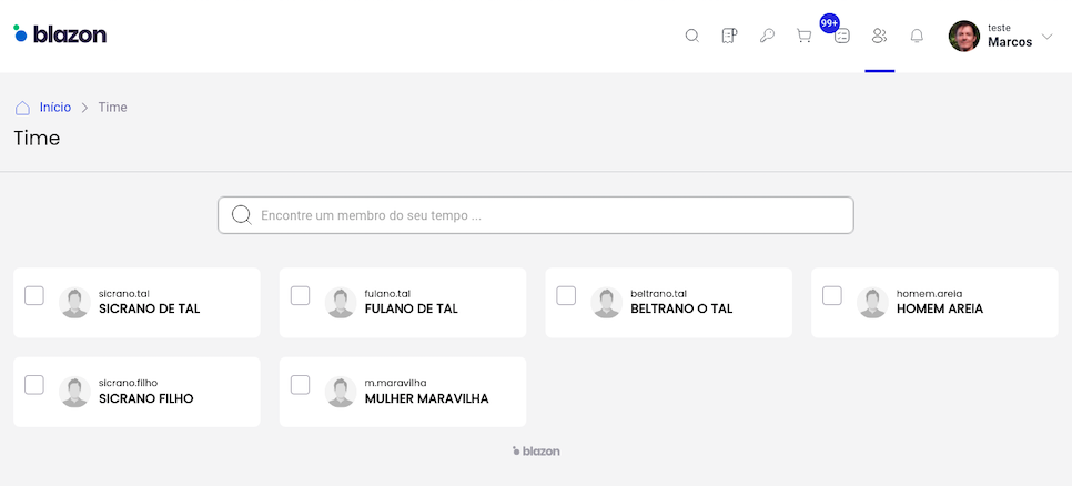 Para encontrar o usuário de forma mais fácil, você pode utilizar a barra de busca digitando o nome do usuário que deseja encontrar.