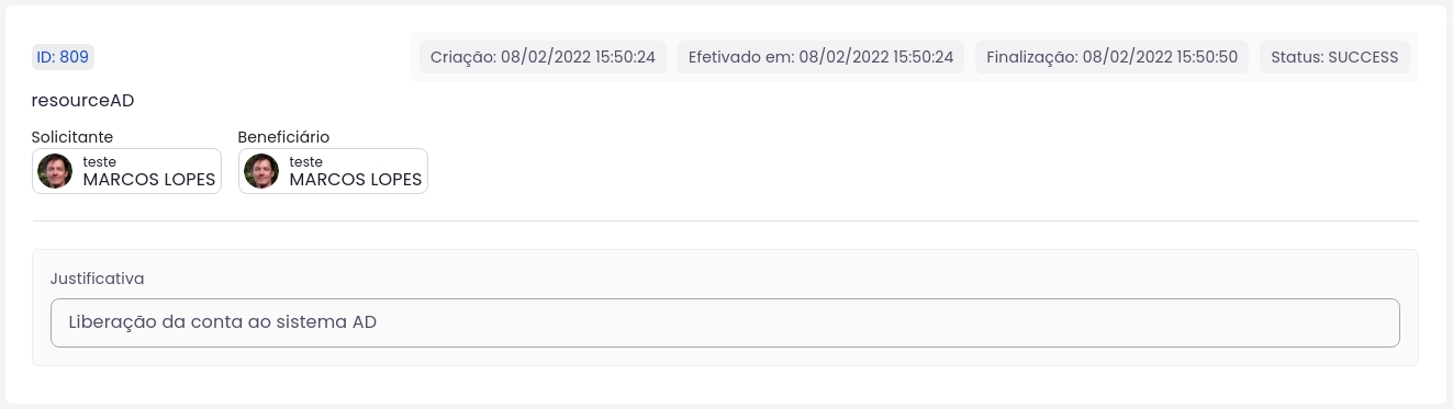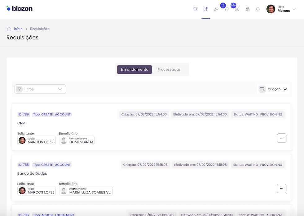 Sempre que você solicita um novo acesso, ou até mesmo atualiza suas informações pessoais, uma requisição é gerada. As requisições, lhe dão a possibilidade de rastrear em qual situação se encontra suas solicitações.